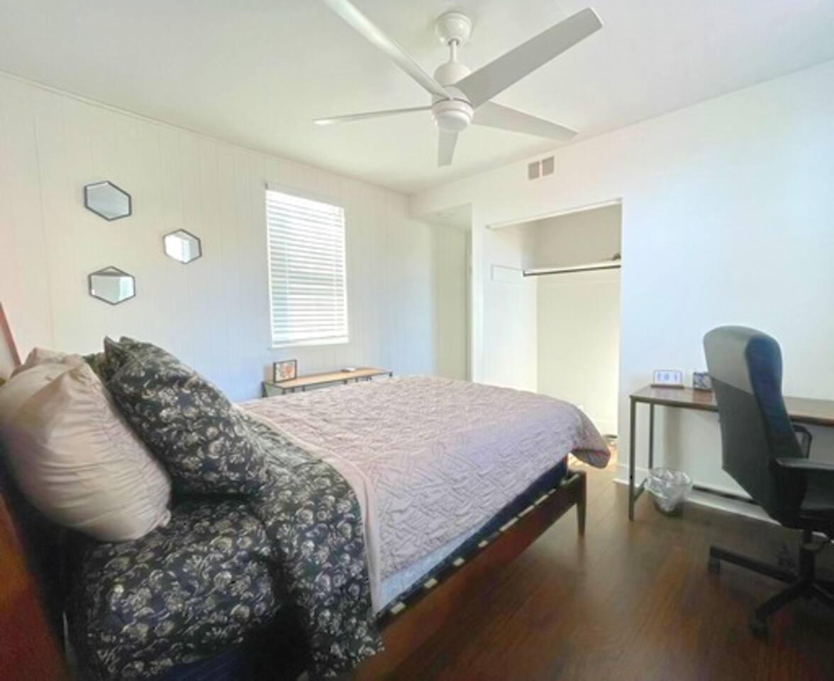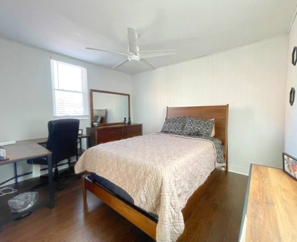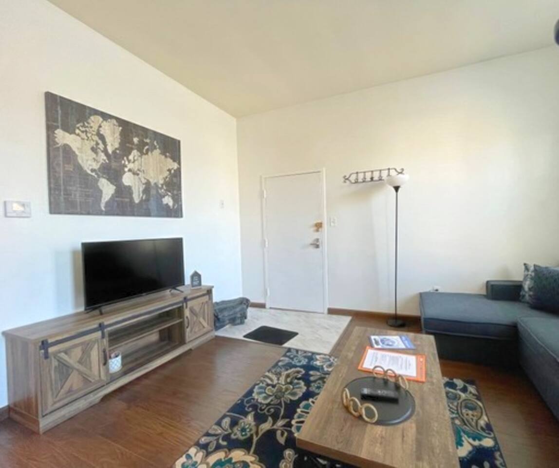 We Provide: Kitchen basics Clean linens (towels, sheets, etc.) WiFi Smart TV Heat Air Conditioning Bedroom 1: Adjustable Queen size bed with massage setting Storage cubes Open concept closet for hanging items Shoe storage Window air conditioning Bedroom 2: New full size mattress Electric fire place Large desk and comfortable office chair Dresser drawer storage Open concept closet for hanging items Window air conditioning Luxury bathroom: Large walk in shower with a rainfall shower head and body sprayers Two person jacuzzi tub His and hers vanity sinks Living room: Smart tv Sectional couch with pull out for additional space (**Please let us know if you will be needing linens for the pull out**) Love sac Kitchen: Standard appliances Coffee maker Booth seating for up to five Essential kitchen cook wear Spacious pantry